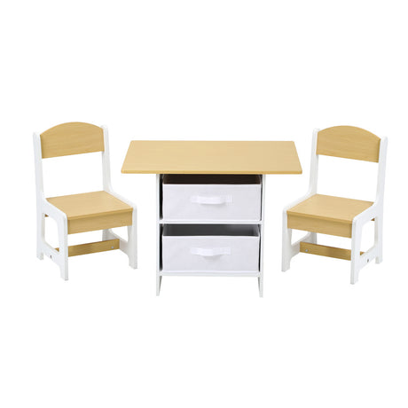 Oikiture Kids Table and Chair Set with Storage Bins Wooden & White