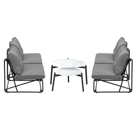 Livsip 6PCS Outdoor Sofa Set 2-in-1 Coffee Table with Chairs Grey