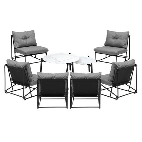 Livsip 6PCS Outdoor Sofa Set Nesting Coffee Table with Chairs Grey