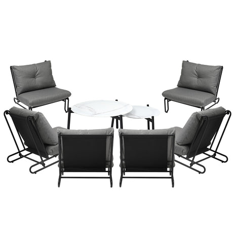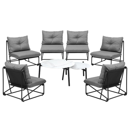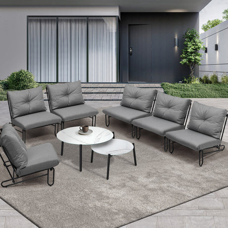 Livsip 8PCS Outdoor Sofa Set Nesting Coffee Table with Chairs Grey