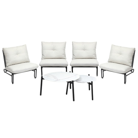 Livsip 6PCS Outdoor Sofa Set 2-in-1 Coffee Table with Chairs Beige