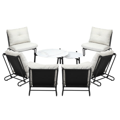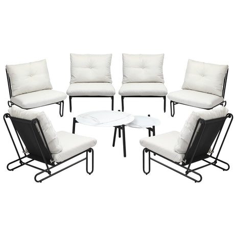 Livsip 8PCS Outdoor Sofa Set Nesting Coffee Table with Chairs Beige