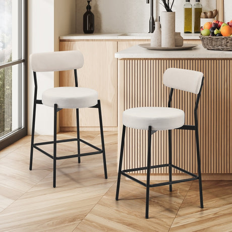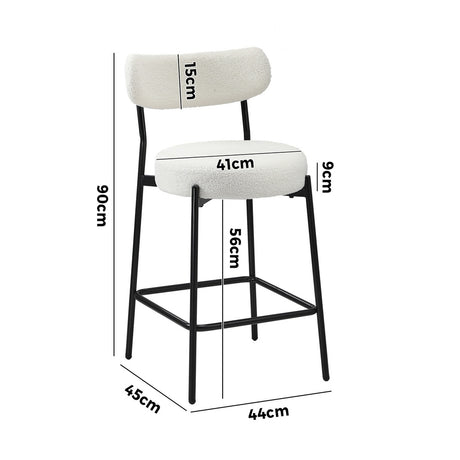 Oikiture 2x Bar Stools Kitchen Dining Stool Boucle Fabric White