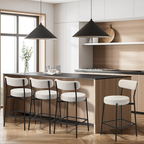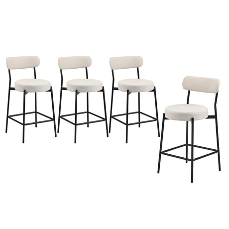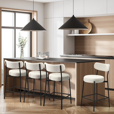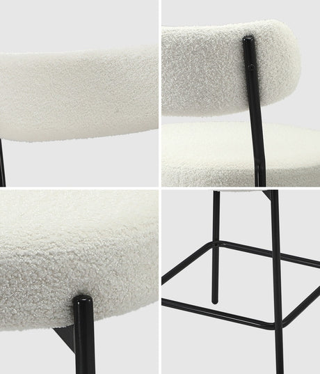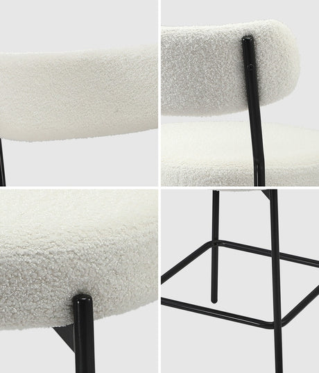Oikiture 4x Bar Stools Kitchen Dining Stool Boucle Fabric White
