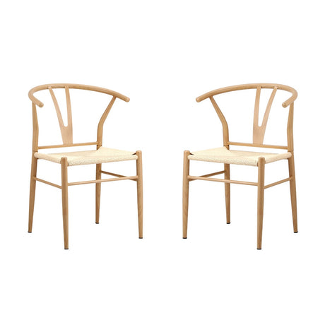 Oikiture 2x Dining Chair Metal Hans Wegner Chair Wishbone Beige