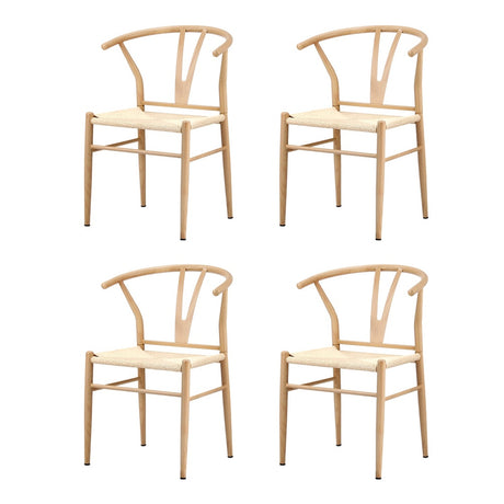 Oikiture 4x Dining Chair Metal Hans Wegner Chairs Wishbone Beige