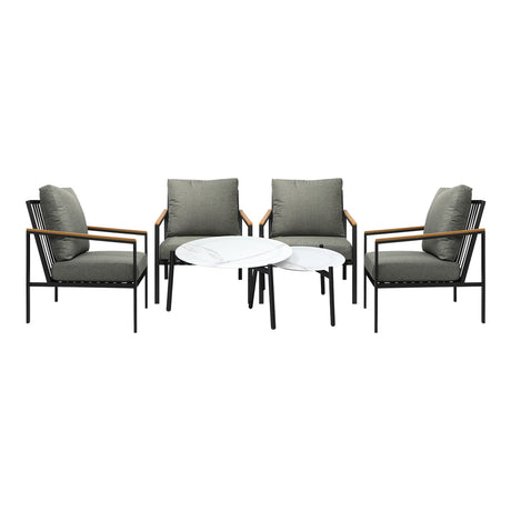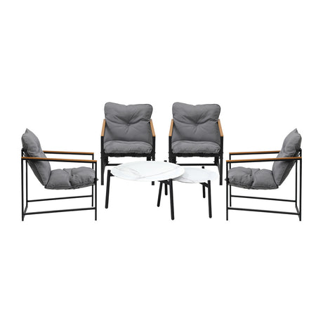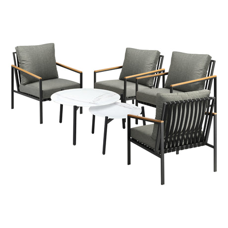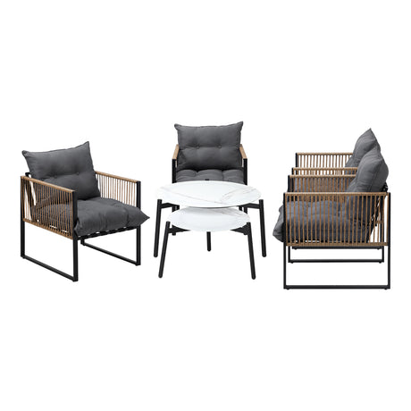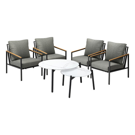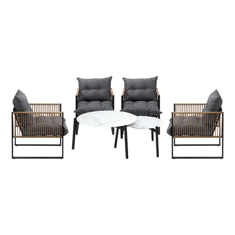 Livsip 6PC Outdoor Patio Set 2 Coffee Table with Grey Chairs