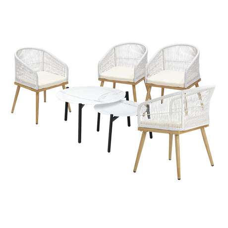 Livsip 6PCS Outdoor Patio Set White Table Sets Polyester Chair Rope