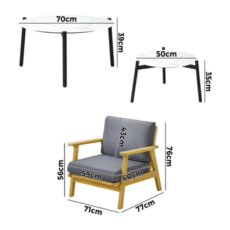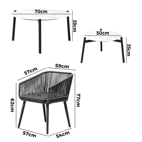 Livsip Outdoor Patio Lounge Set White 50/70cm Coffee Table Set Chairs