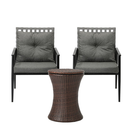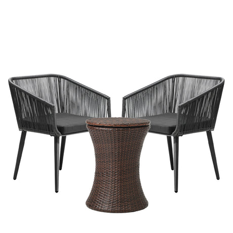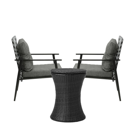 Livsip Outdoor Patio Set Ice Bucket Black Table Rattan Bistro Set 3pcs