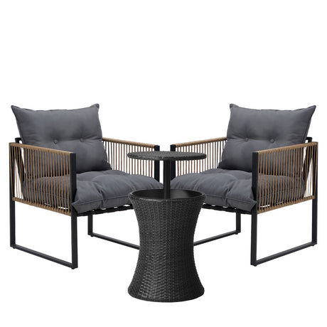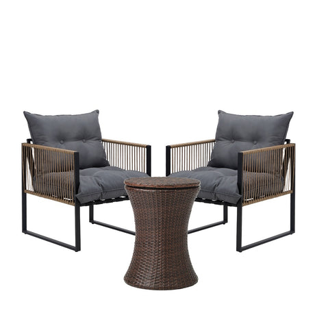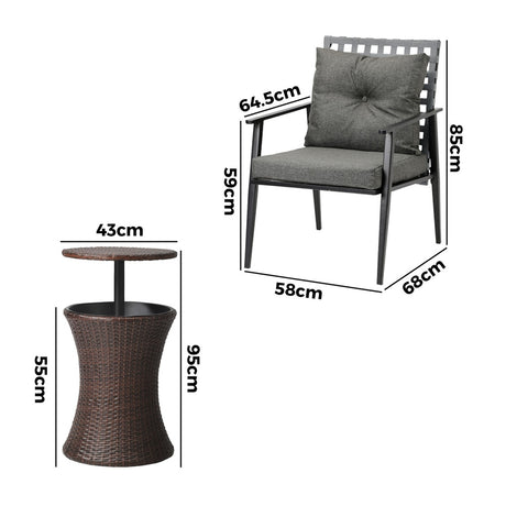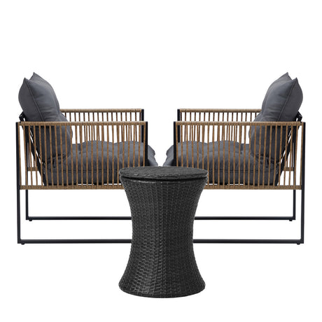 Livsip Outdoor Patio Set Ice Bucket Brown Table Rattan Bistro Set 3pcs