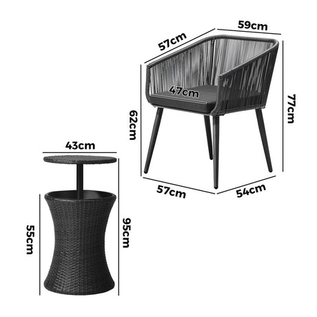 Livsip Outdoor Furniture Setting Ice Bucket Black Table 2 Seater