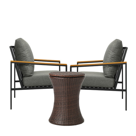 Livsip Outdoor Patio Set Ice Bucket Brown Table Bistro Setting 3pcs