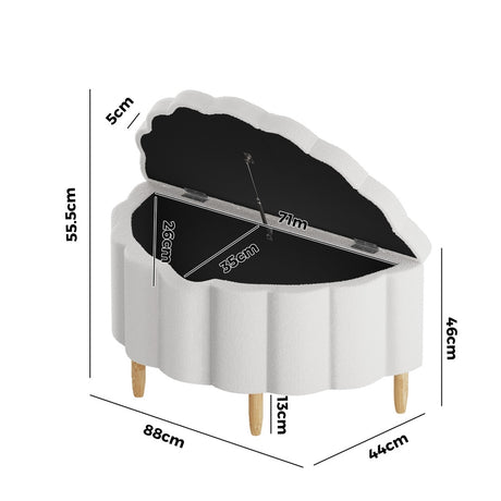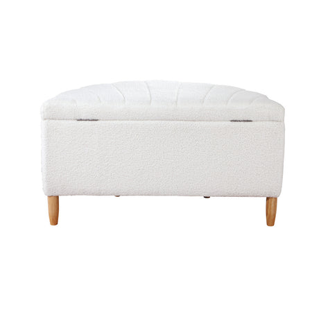 Oikiture Storage Ottoman Scallop Boucle Fleece Foot Stool Seat Chest