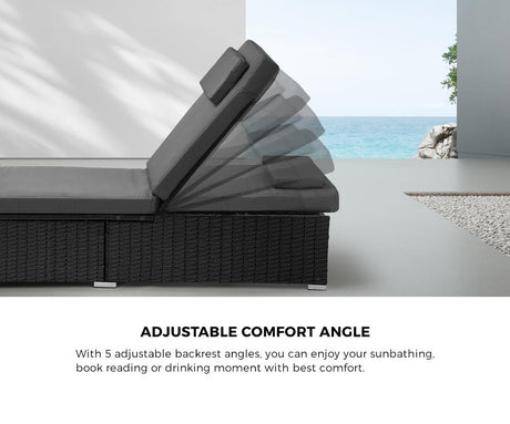 Livsip 2x Sun Lounge Wicker Lounger with Adjustable Backrest