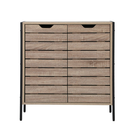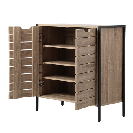 Oikiture Shoes Storage Cabinet 2 Slatted Doors 4 Shelves Brown
