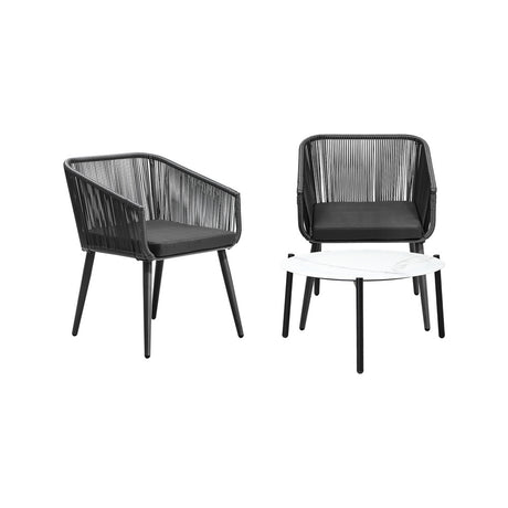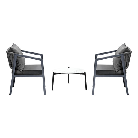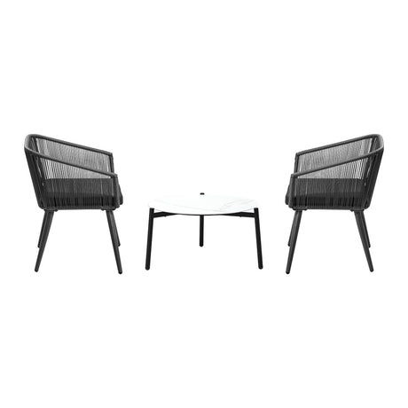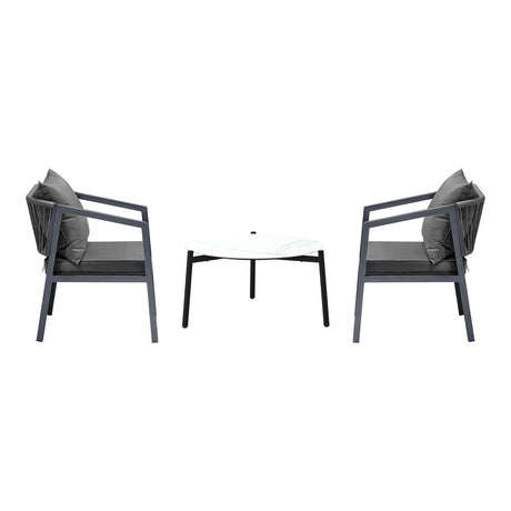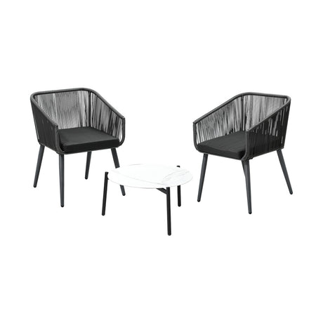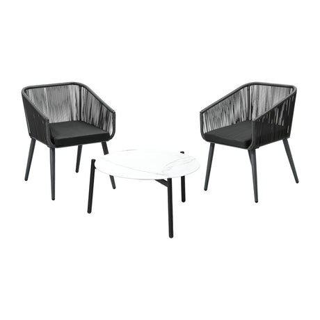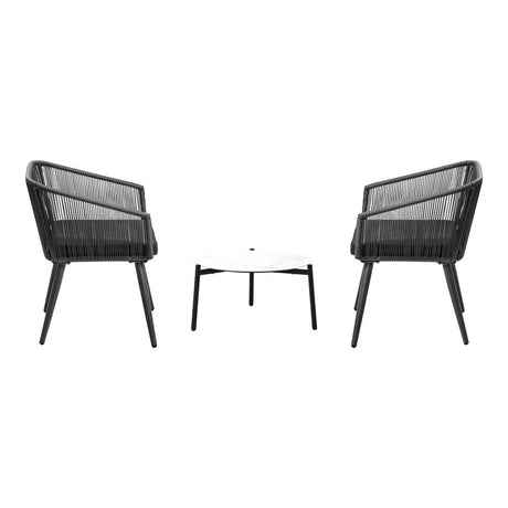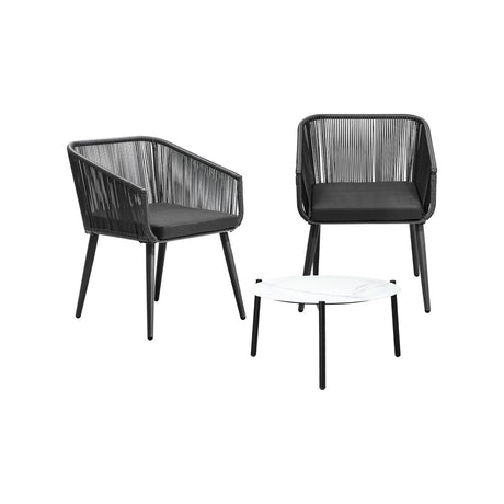 Livsip 3PCS Outdoor Lounge Set 50cm Coffee Table Polyester Chair Rope