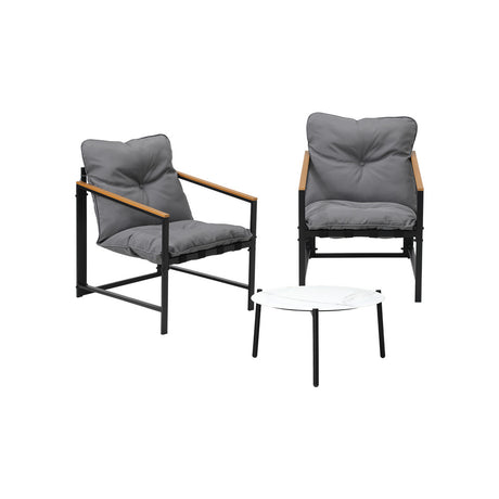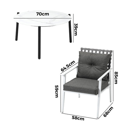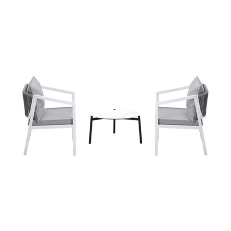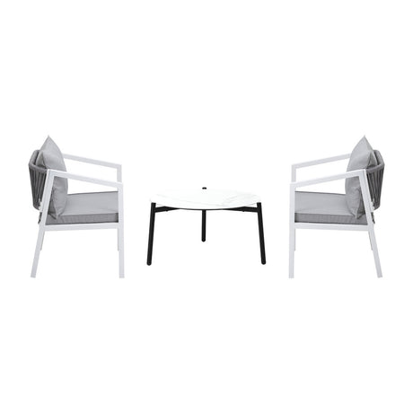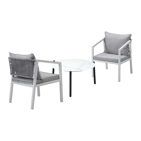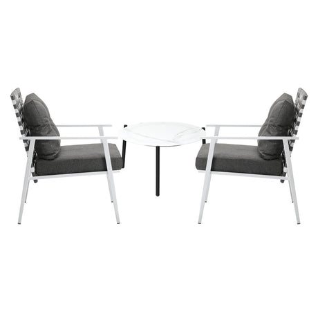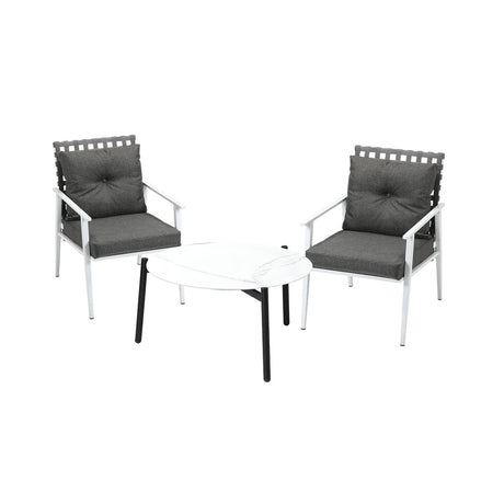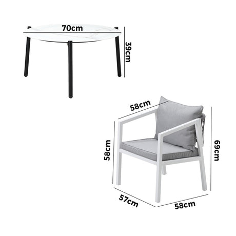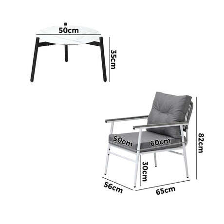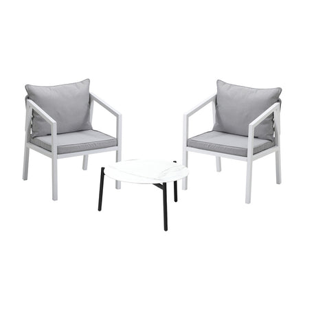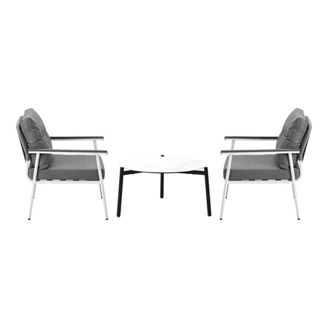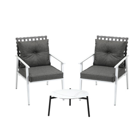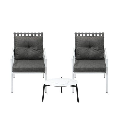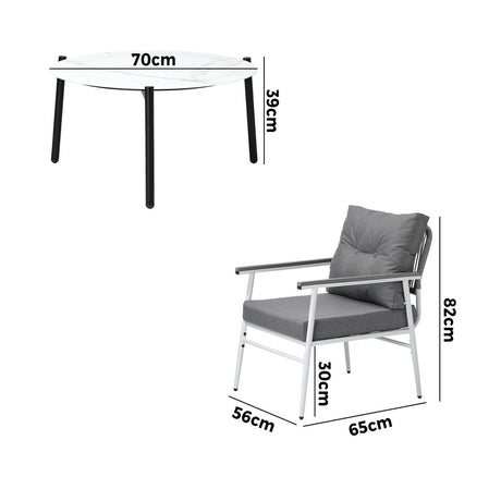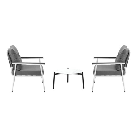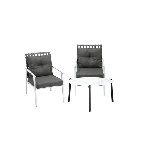 Livsip 3PCS Outdoor Patio Set White 70cm Coffee Table Grey Chairs