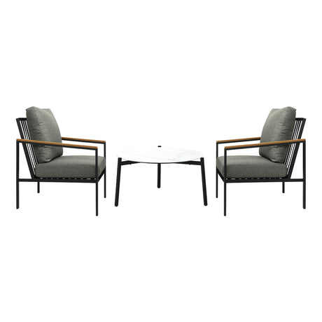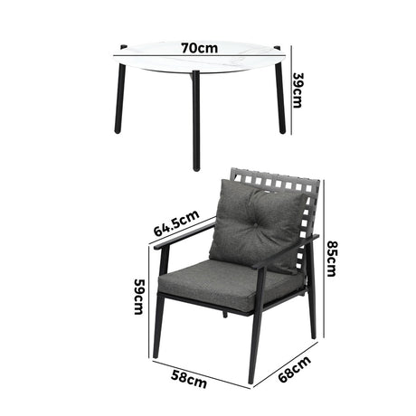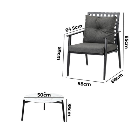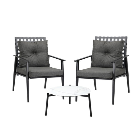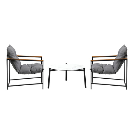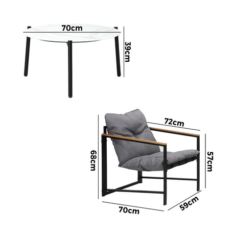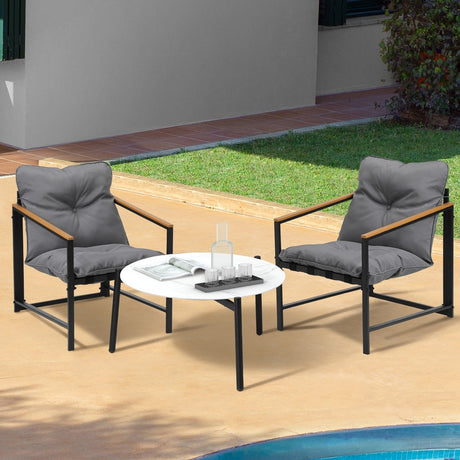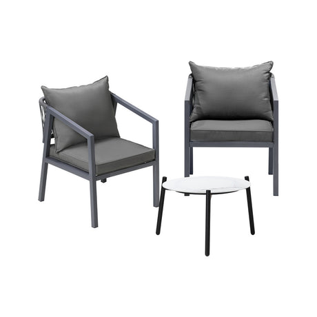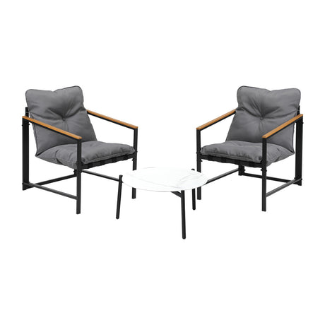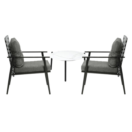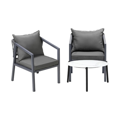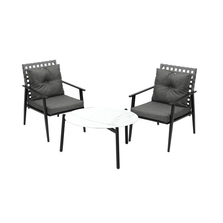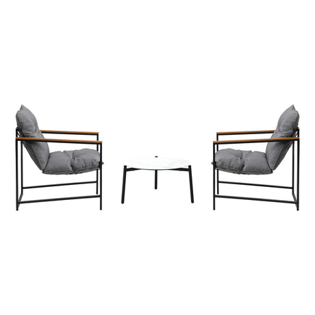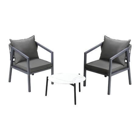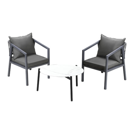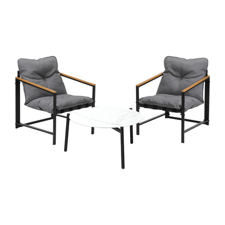 Livsip 3PCS Outdoor Patio Set White 70cm Coffee Table Grey Chairs
