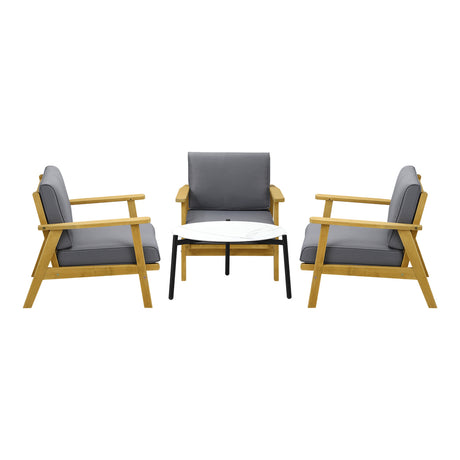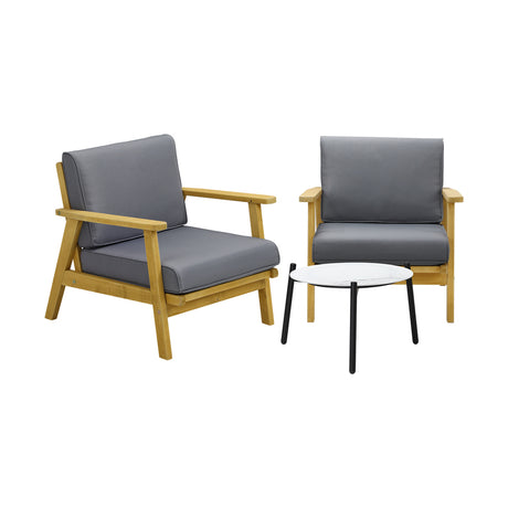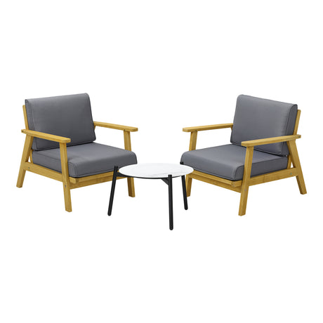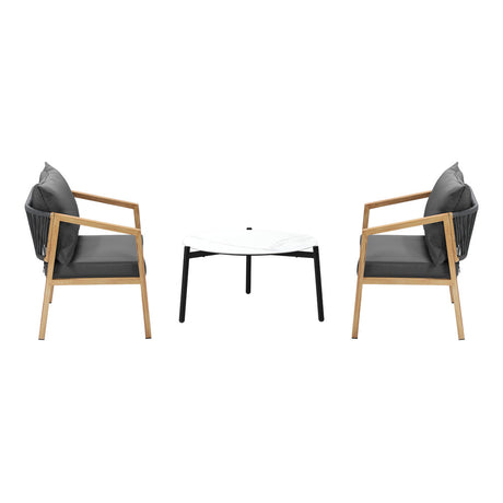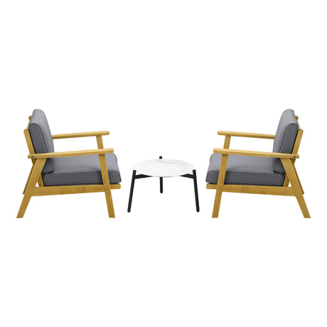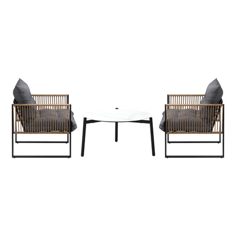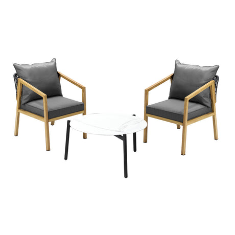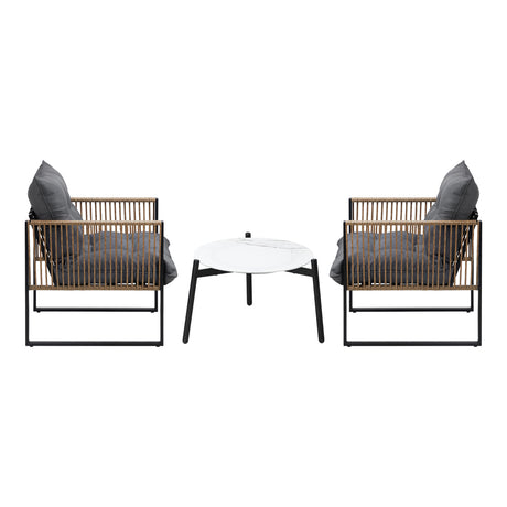 Livsip 3PCS Outdoor Patio Set 70cm Coffee Table Grey and Natural Chairs