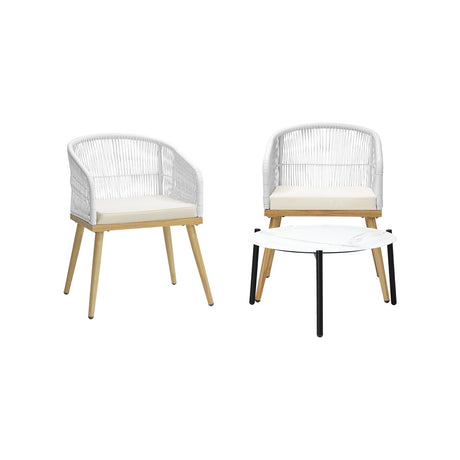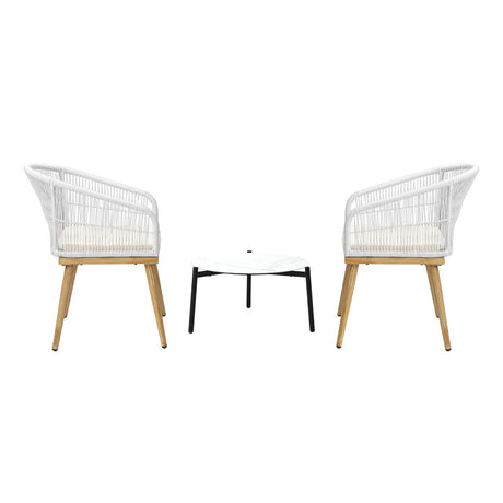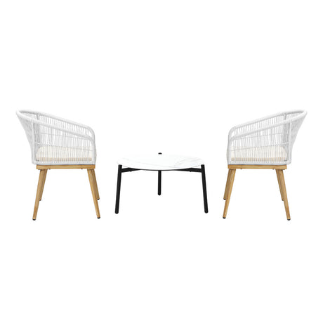 Livsip 3PCS Outdoor Patio Set White 50cm Coffee Table Natural Chairs