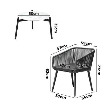 Livsip 3pcs Outdoor Patio Set 50cm Marble Table Rattan Chairs