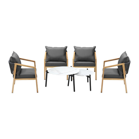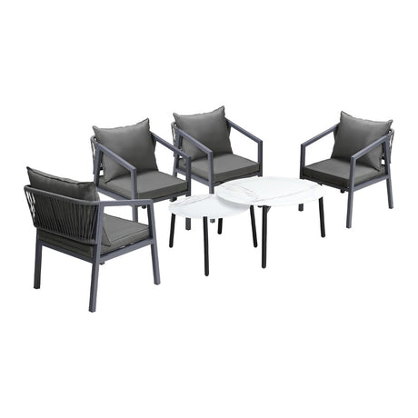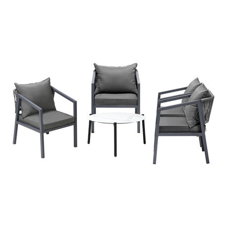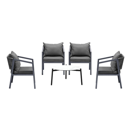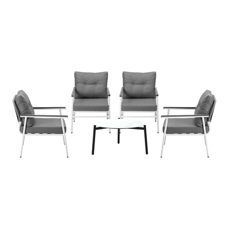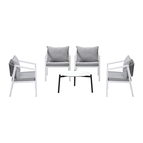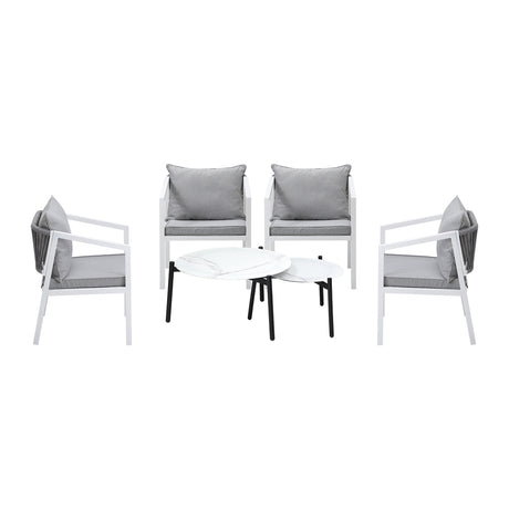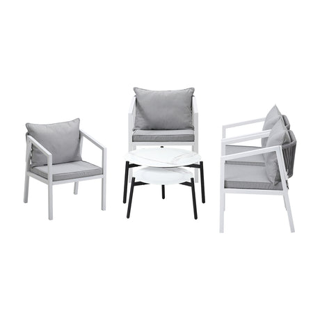 Livsip 4 Seater Outdoor Patio Set White 70cm Coffee Table Grey Chair