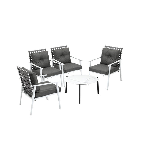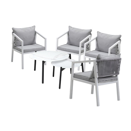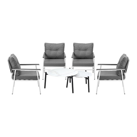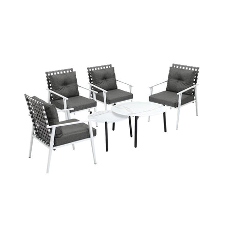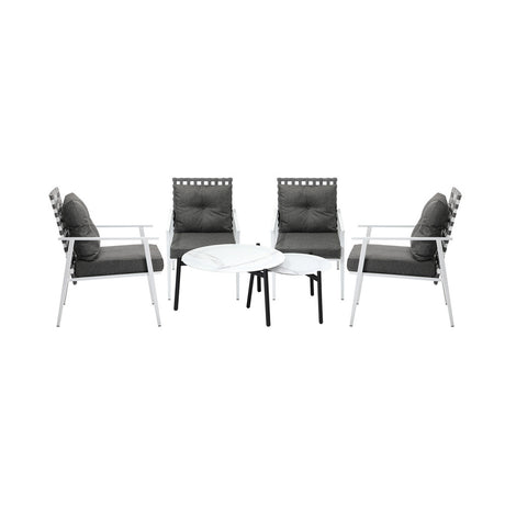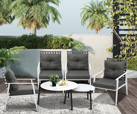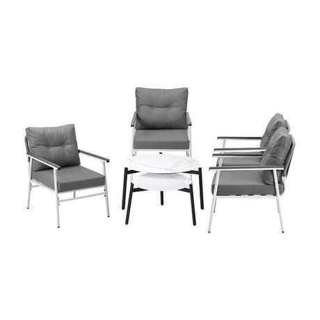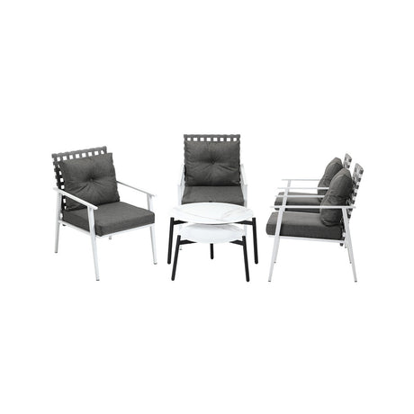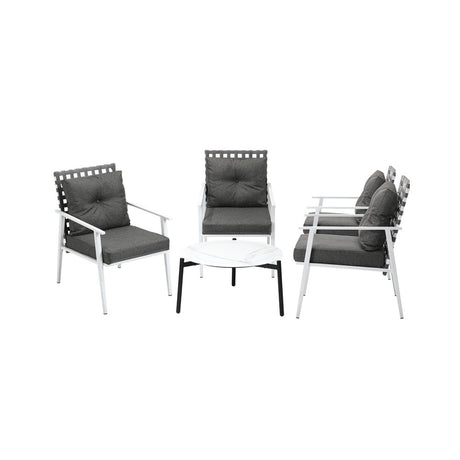 Livsip 6PCS Outdoor Patio Set White 70cm Coffee Table Set Grey Chairs
