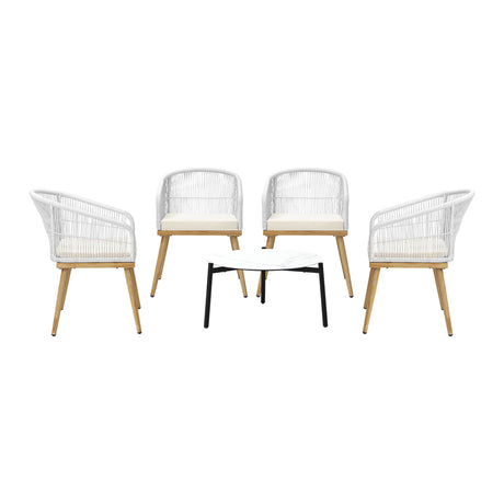 Livsip 4 Seater Outdoor Patio Set White 70cm Coffee Table Natural Chair