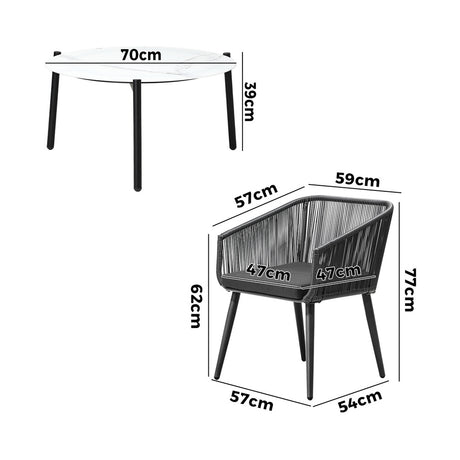 Livsip 3pc Outdoor Lounge Sets 70CM White Round Table Rattan Chairs