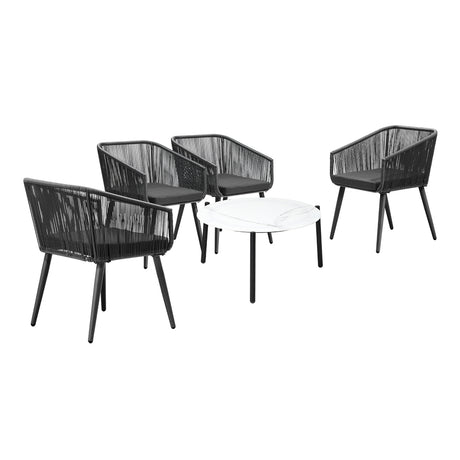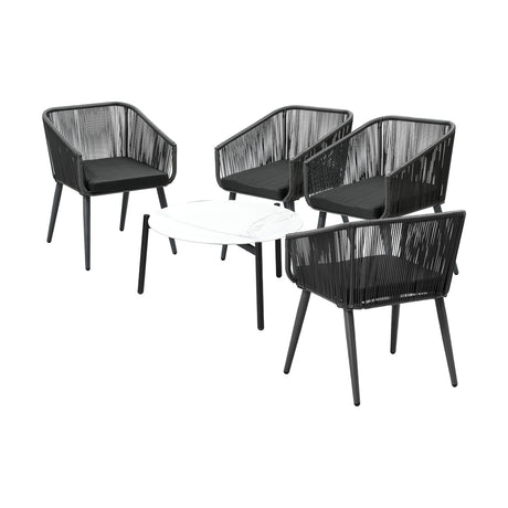 Livsip 5PC Outdoor Patio Set 70CM White Marble Table Rattan Chairs
