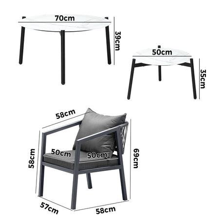 Livsip 2 Seater Outdoor Lounge Set 70cm White Coffee Side Table