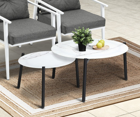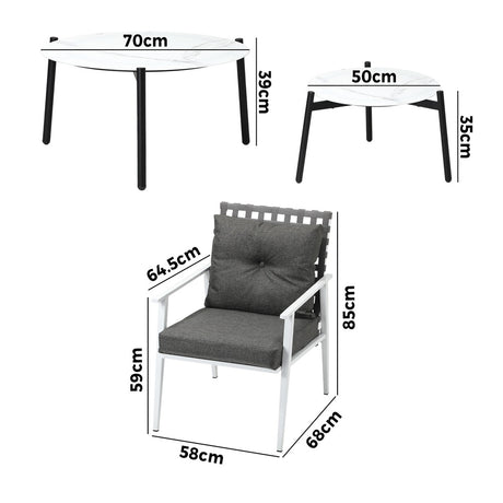 Livsip 2 Seater Outdoor Patio Set 70CM Round White Marble Table