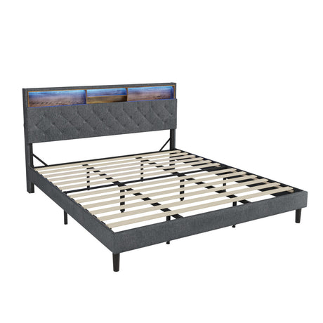 Oikiture Bed Frame with LED Storage Bedhead King Size NOVI