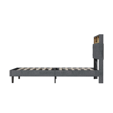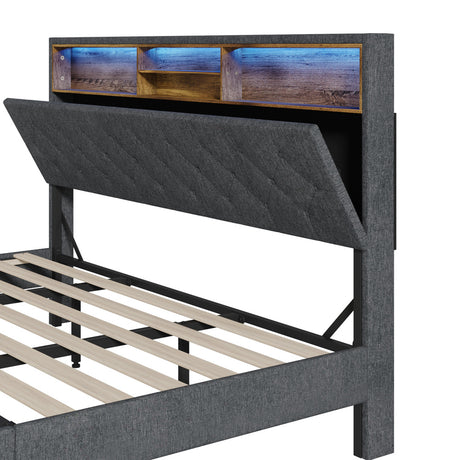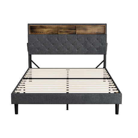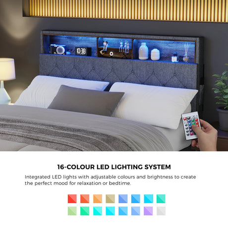 Oikiture Bed Frame with LED Storage Bedhead Queen Size NOVI