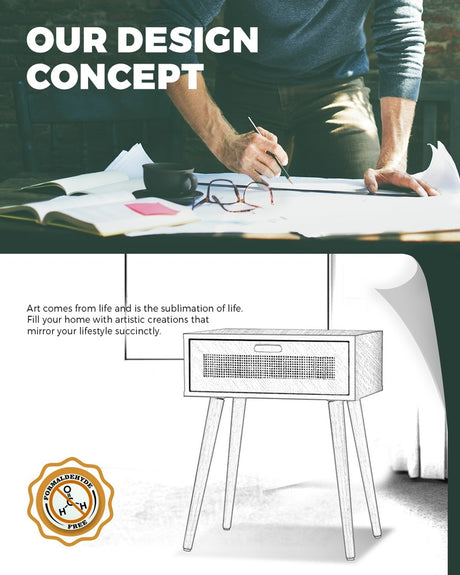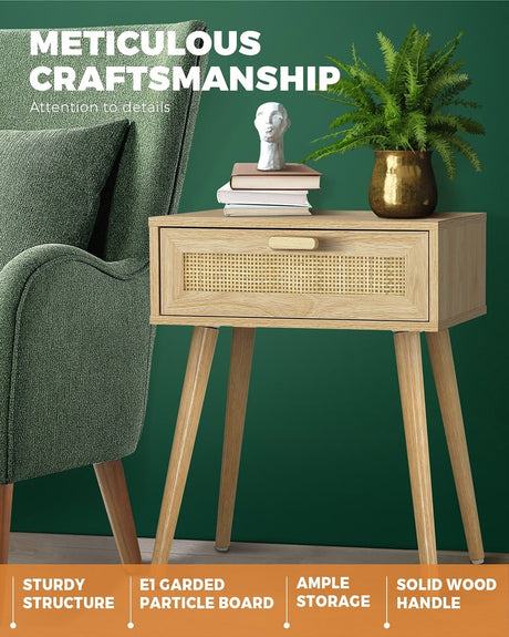 Oikiture Bedside Tables Set of 2 Nightstand Natural
