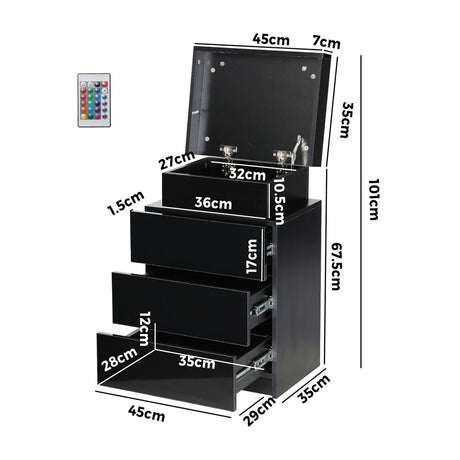 Oikiture Bedside Tables Set of 2 LED Nightstand Black