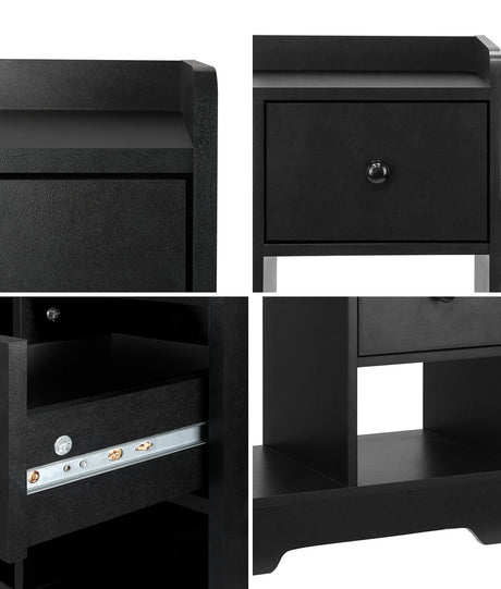 Oikiture Bedside Tables Set of 2 Nightstands Black