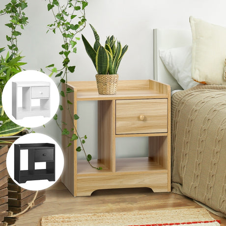 Oikiture Bedside Tables Set of 2 Nightstand Shelf Natural