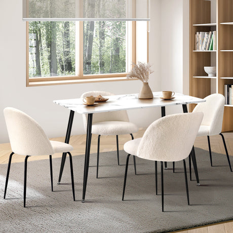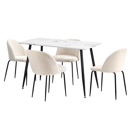 Oikiture 120cm Rectangle Dining Table with 4PCS Chairs White Sherpa