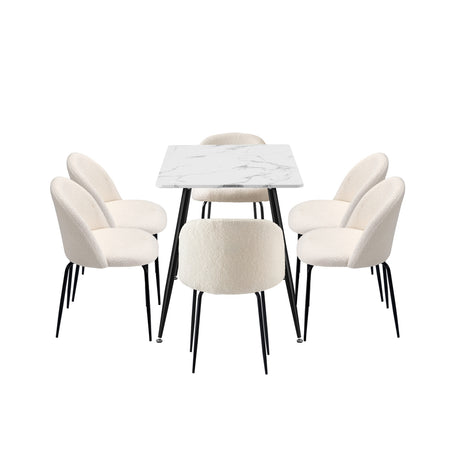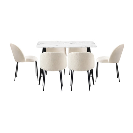 Oikiture 120cm Rectangle Dining Table with 6PCS Chairs White Sherpa