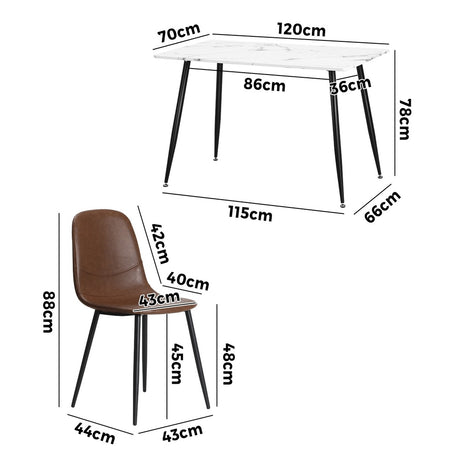 Oikiture 120cm Rectangle Dining Table with 6PCS Chairs PU Brown