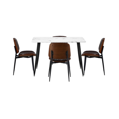 Oikiture 120cm Rectangle Dining Table with 4PCS Chairs PU Walnut