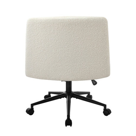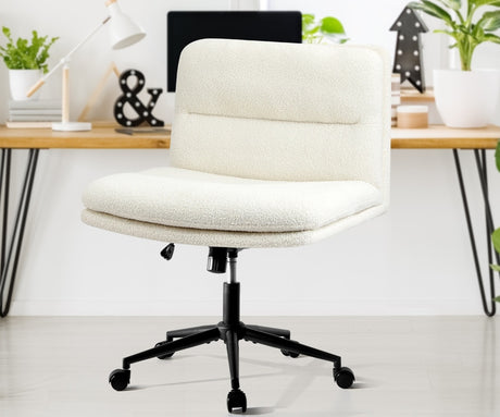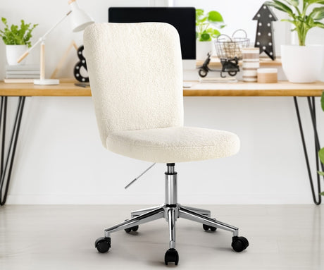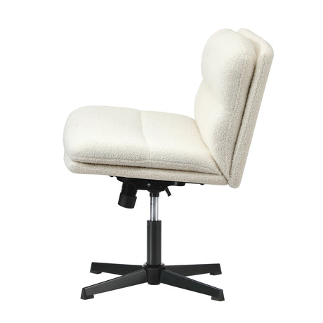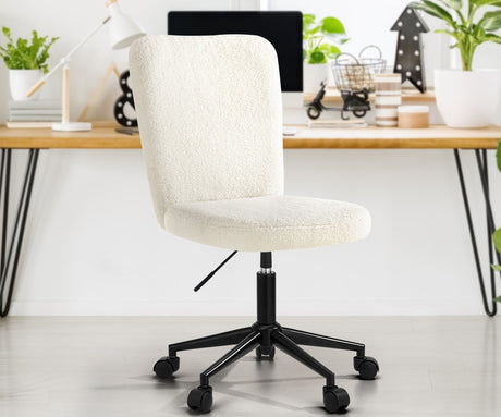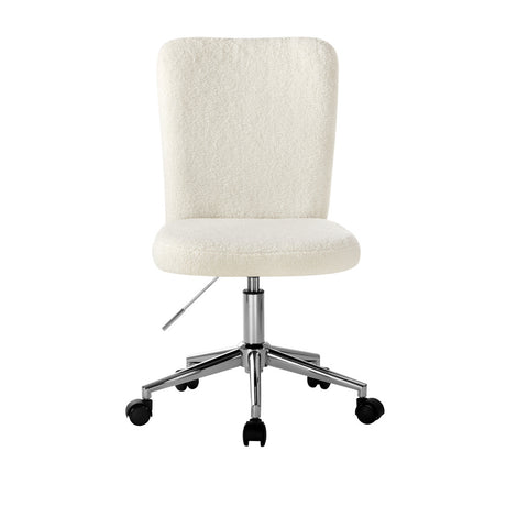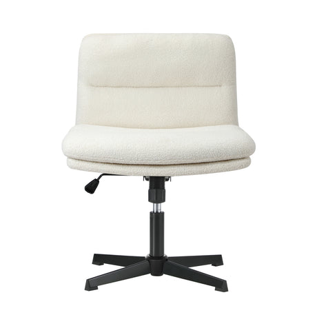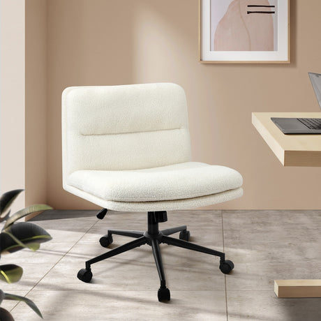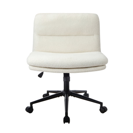 Oikiture Armless Office Chair Wide Seat Boucle White with Wheels