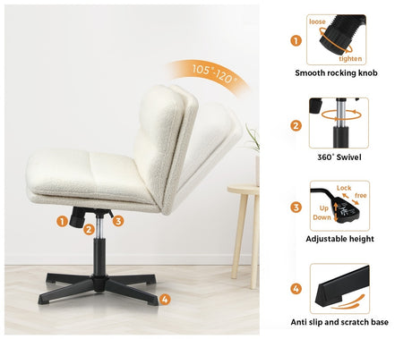 Oikiture High Back Armless Office Chair Boucle White&Silver