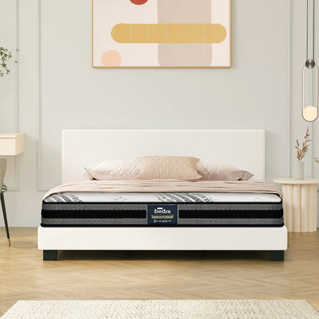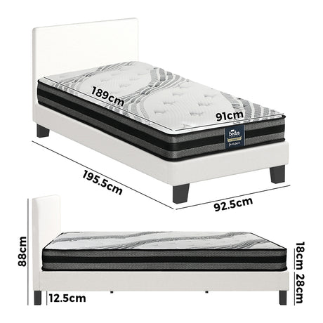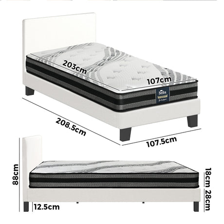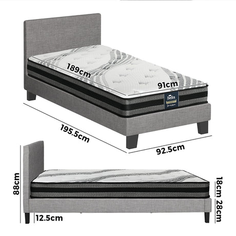 Oikiture Bed Frame with King Single Size Mattress Set Grey Fabric