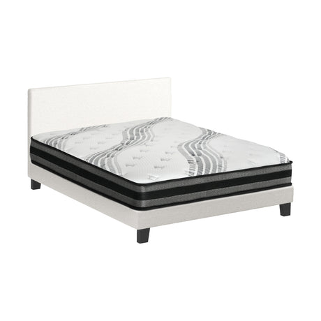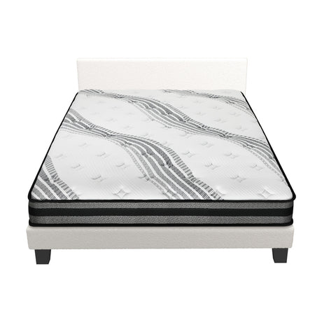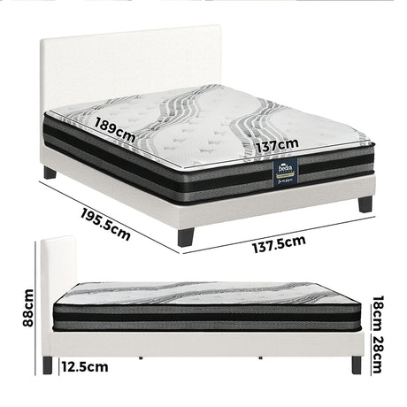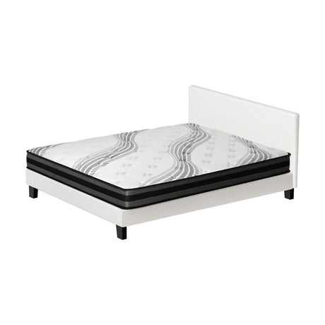 Oikiture Bed Frame with Double Mattress Set Boucle Fabric White