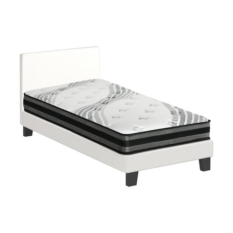 Oikiture Bed Frame with Single Size Mattress Set Boucle Fabric White