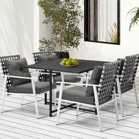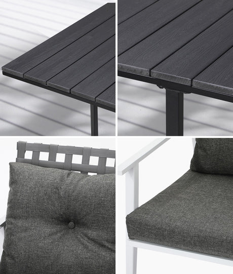 Livsip Outdoor Dining Set Balck Table Rattan White Chairs 5PC