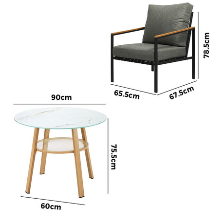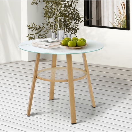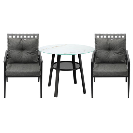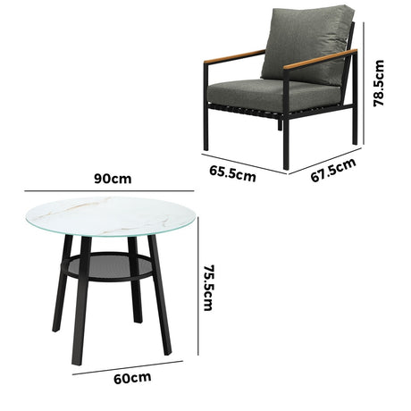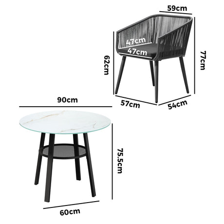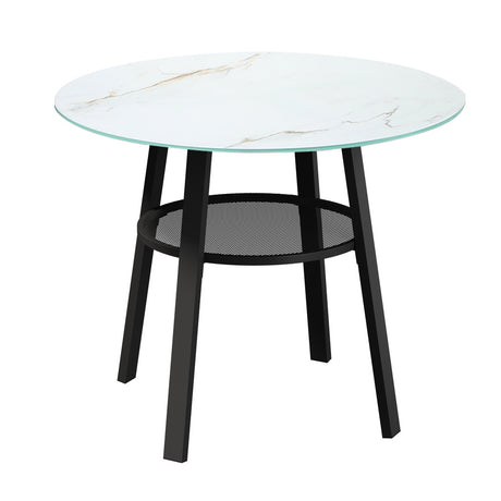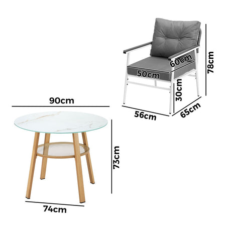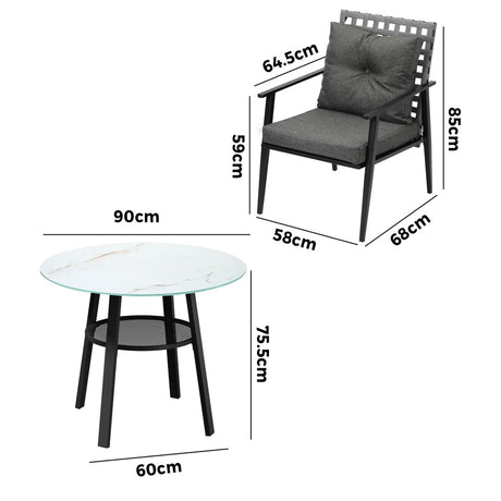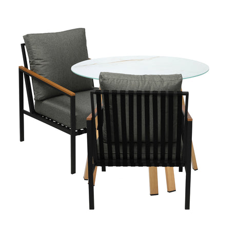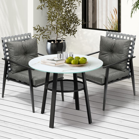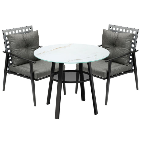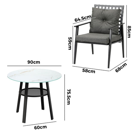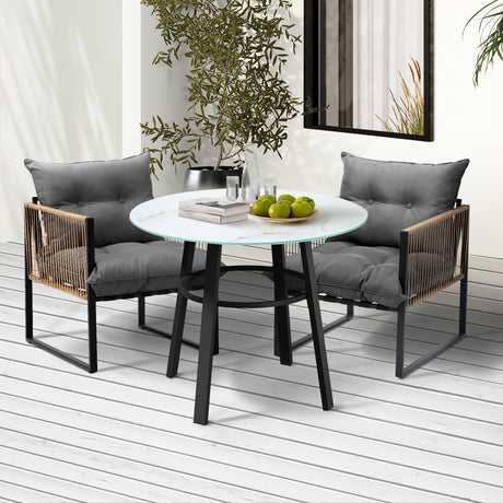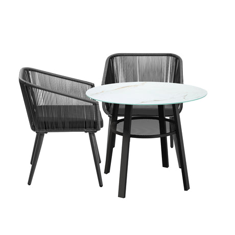Livsip Outdoor Dining Set 2 Seater Marble Tempered Glass Table